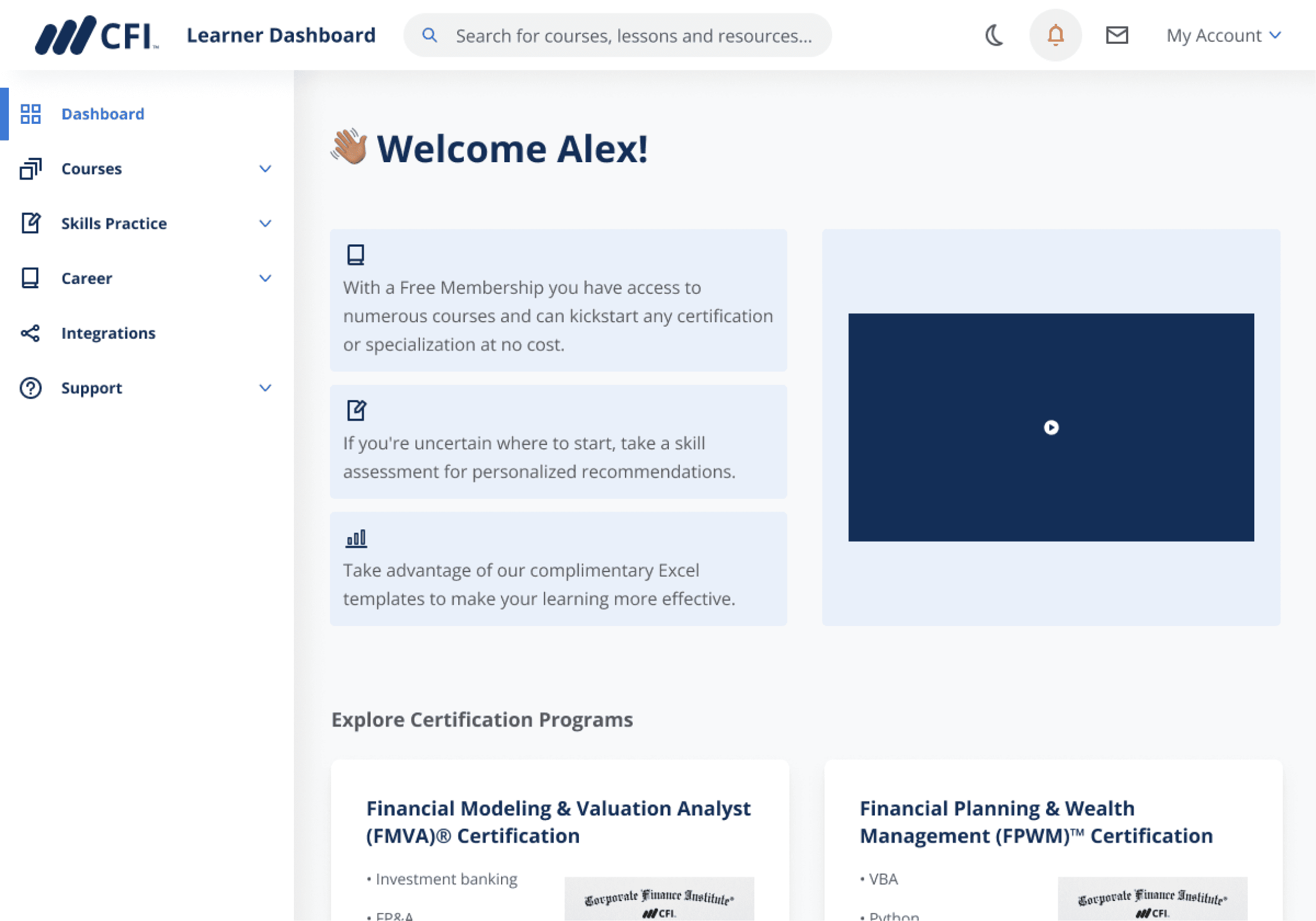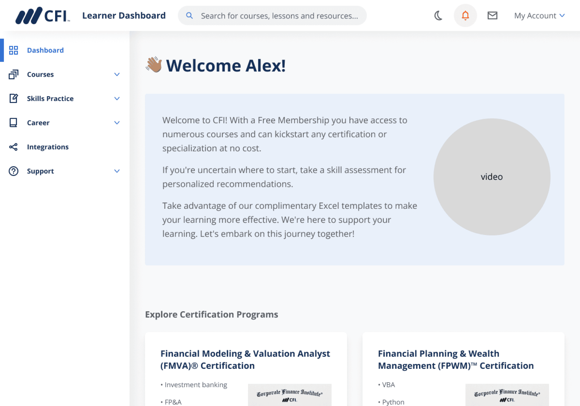 Corporate Finance Institute (CFI) provides online courses and certifications to people in finance and banking using its own e-learning dashboard